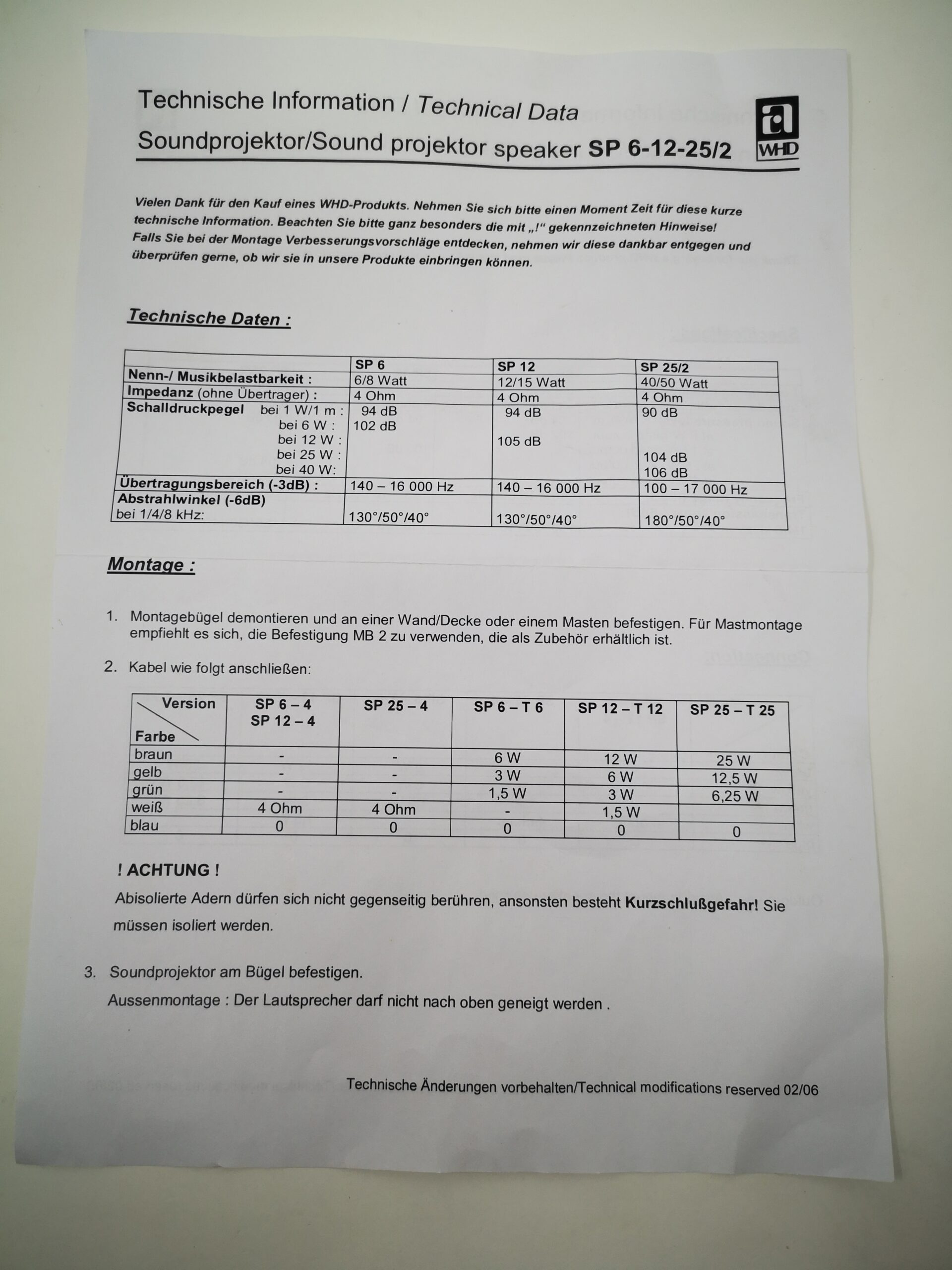 Lautsprecher für Beschallungsanlage WHD Sound projektor speaker SP 25/2-T25