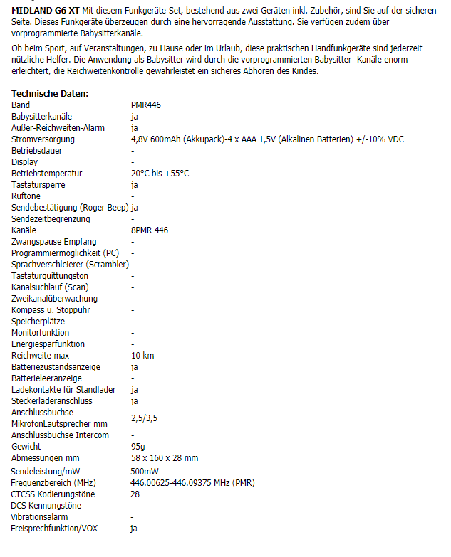 Midland G6XT – preiswertes PMR446 Funkgeräteset
